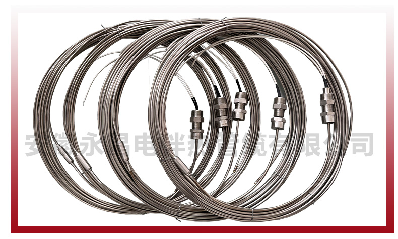 安徽永昌制造的礦物絕緣MI加熱電纜-內部是采用當根或多 根電合金絲作為發(fā)熱源、高純度、高溫、電容結晶氧化鎂粉作導熱絕緣體。外部采用無縫連續(xù)不銹鋼/(銅、銅鎳、合金材料等)作為護套,使用特殊工藝制造而成,在又強腐蝕作用的場所可加PE護套或低煙無鹵護套。